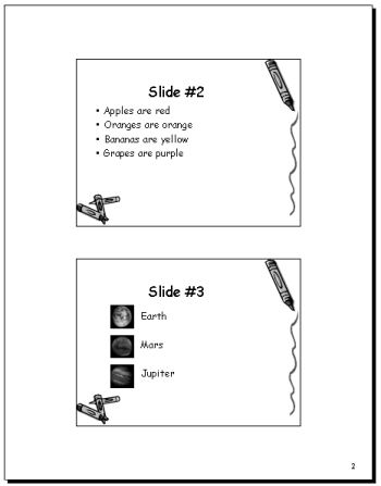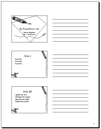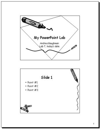 Purpose: to assure that the student can use Power Point to create slides for a presentation and to print them as slides or handouts.
